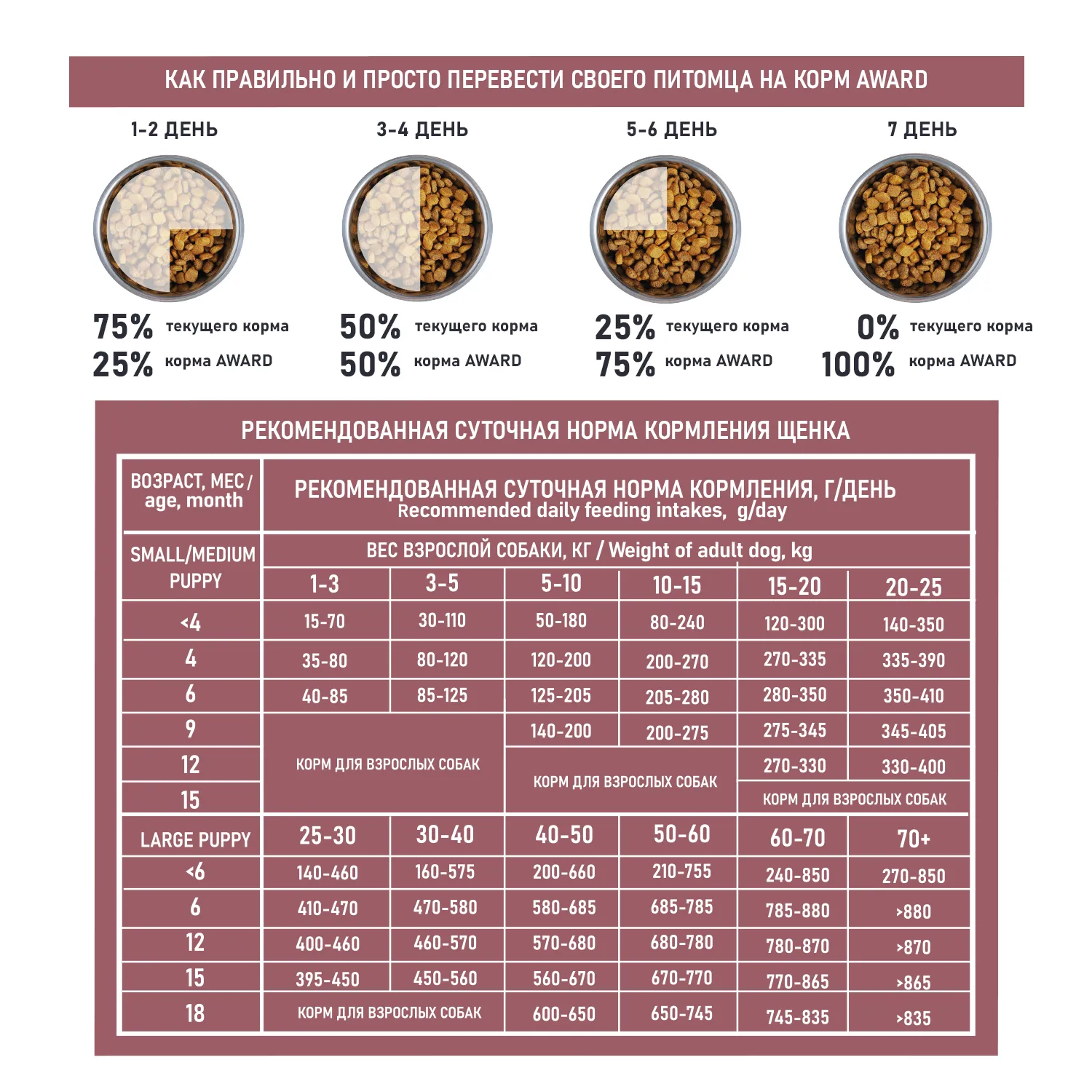 Корм Award - тщательно сбалансированная рецептура из 100% натуральных ингредиентов, созданная по инновационной формуле, обеспечивающей комплексную нутрицевтическую поддержку организма питомца.