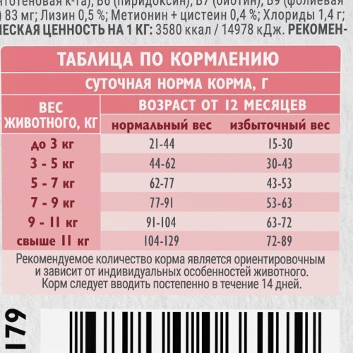 Полнорационный сухой корм суперпремиум-класса с индейкой для стерилизованных кошек. Улучшенный обмен веществ. У большинства современных стерилизованных кошек снижается физическая активность, что приводит к нарушению метаболизма. Преимущества корма: • Индейка — естественный источник L-триптофана, гормона счастья• Пониженное содержание жира и увеличенное количество клетчатки для здорового и активного обмена веществ• Жирные кислоты из натуральных источников для красоты шерсти и здоровья кожи• Свежее мясо для активности в течение дня• Витамины, минералы и антиоксиданты для поддержки иммунитета питомца• Растворимые и нерастворимые пищевые волокна для здорового пищеварения и микрофлоры кишечника.