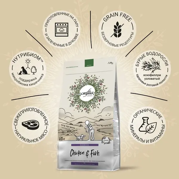 Сухой корм CRAFTIA HARMONA для котят из курицы и рыбы 1,4 кг