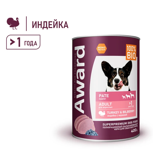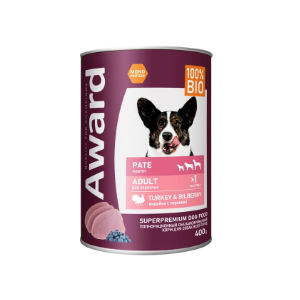 Влажный корм AWARD для взрослых собак паштет из индейки с черникой 400г