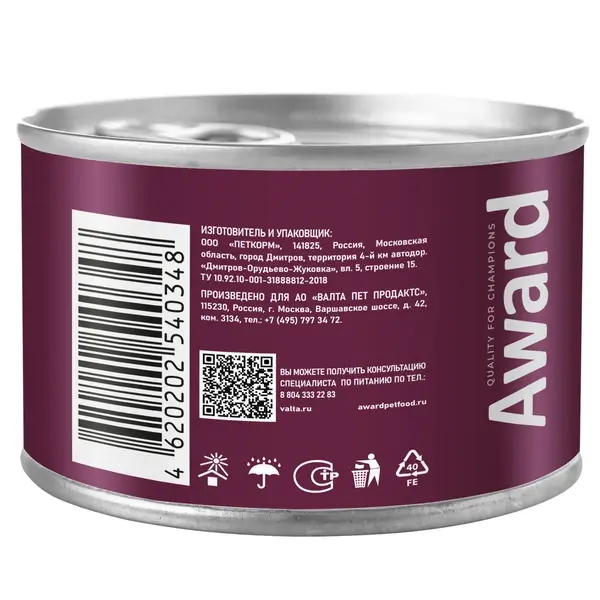 Состав: утка 66%, брусника 8%, свекловичная клетчатка, витамины и минералы, льняное масло 0,5%.