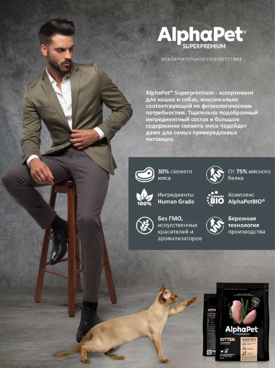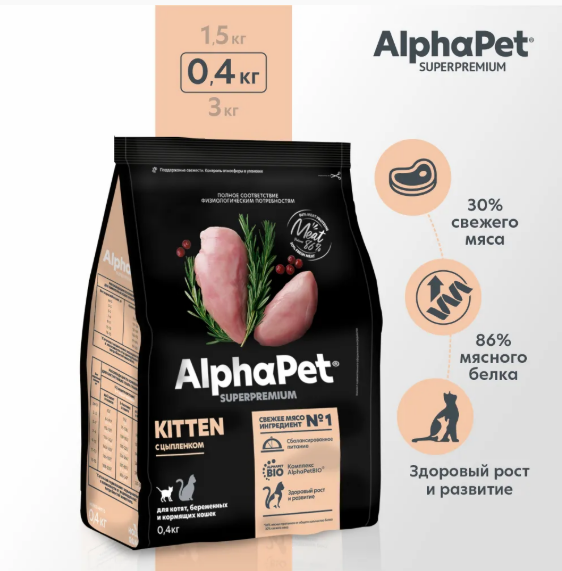 Подарите своему котёнку лучшее — выберите премиум сухой корм для кошек AlphaPet и убедитесь в его качестве уже сегодня!