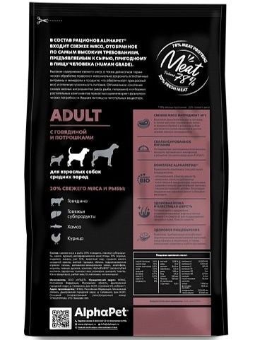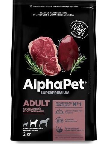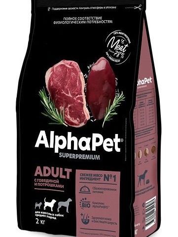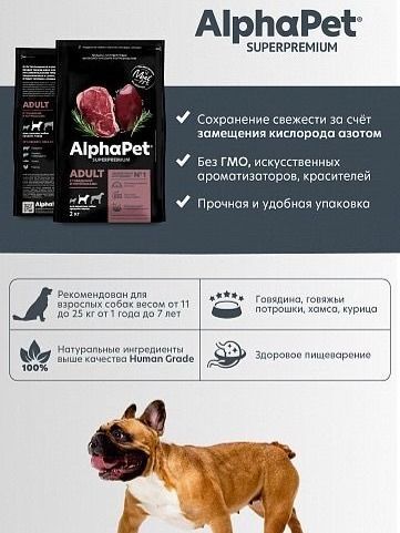 AlphaPet Superpremium - это идеальный корм для собак сухой для ежедневного питания ваших любимцев. Сухой корм для взрослых собак создано специально для собак средних пород. Этот корм для собак премиум класса сухой сочетает в себе высокое качество и инновационные технологии швейцарского производства. Альфапет корм для собак содержит 78% натурального мясного белка, что делает его отличным источником питательных веществ для вашего питомца. Благодаря добавке AlphapetBIO, укрепляющей иммунитет, ваш пёс будет здоровым и счастливым. Кроме того, Альфа Пет корм для собак обогащен омега-3 жирными кислотами, которые положительно влияют на сердечно-сосудистую систему вашего четвероногого друга. Также этот продукт поможет укрепить кости, связки и суставы собаки, уменьшив вероятность получения травм. Одним из главных преимуществ Alphapet для собак является бережная технология обработки компонентов, которая сохраняет все полезные свойства натурального свежего мяса. К тому же этот корм не содержит ГМО, искусственных красителей, ароматизаторов и консервантов. Сделайте правильный выбор в пользу здоровья вашего любимца! Позаботьтесь о нем, предоставив Alpha Pet Superpremium - лучший холистик корм для собак сухой средних пород.