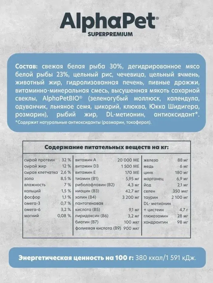 • Уникальный комплекс натуральных добавок AlphaPetBIO®