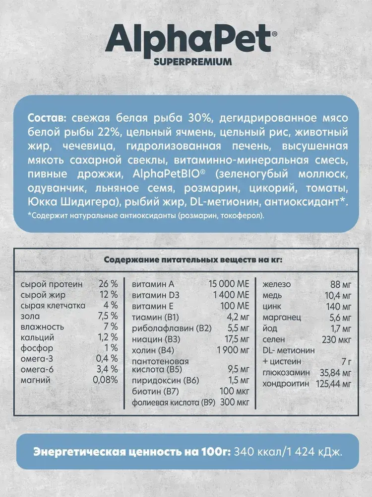 • Уникальный комплекс натуральных добавок AlphaPetBIO®