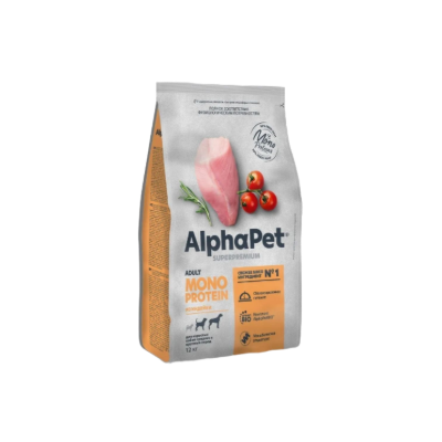 AlphaPet Monoprotein - благодаря единственному источнику животного белка, подойдет животным с пищевой непереносимостью. Индейка богата высокоусвояемым белком, фосфором и железом. Подходит для диетического питания, но в тоже время полноценно насыщает организм питомца. Благодаря высокому содержанию витаминов А В Е К Р и селена, индейка способствует укреплению костей, зубов, нервной системы и поддерживает нормальный гормональный фон.