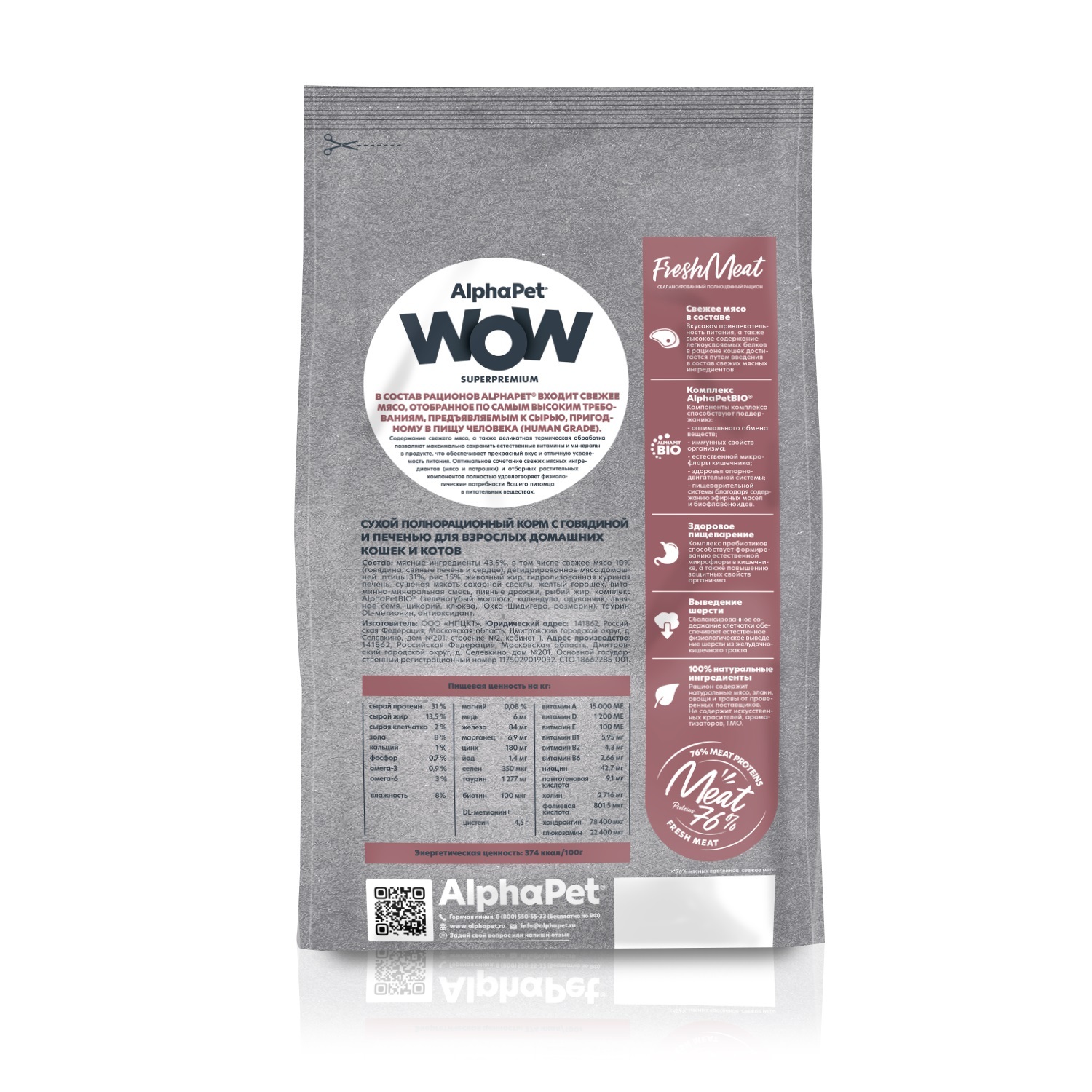Состав: мясные ингредиенты 43,5%, в том числе свежее мясо 10% (говядина, свиные печень и сердце), дегидрированное мясо домашней птицы 31%, пшеница, рис 15%, животный жир, гидролизованная куриная печень, сушеная мякоть сахарной свеклы, желтый горошек, витаминно-минеральная смесь, пивные дрожжи, рыбий жир, комплекс AlphaPetBIO® (зеленогубый моллюск, календула, одуванчик, льняное семя, цикорий, клюква, Юкка Шидигера, розмарин), таурин, DL-метионин, антиоксидант.