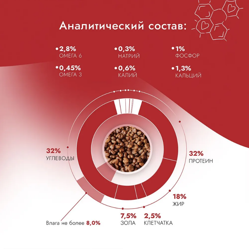 Высококачественный полнорационный корм для кошек Best Dinner с говядиной и картофелем, создан с учетом физиологических потребностей кошек и котят. Вкусная говядина богато необходимыми аминокислотами для здоровья питомца и правильного роста котят. Клюква и DL - метионин, добавленные в рецептуру профилактируют мочекаменную болезнь, а юкка Шидигера прекрасно подойдет для вывода шерсти и устранения неприятных запахов из лотка. Гранулы в форме сердечек не оставят равнодушными даже самых привередливых кошек.