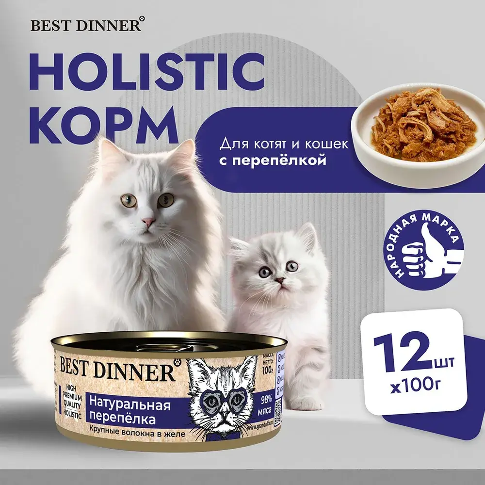 Мясные консервы для кошек Best Dinner – это продукты наивысшего качества, обладают изысканным вкусом, сбалансированным составом для правильного питания и здоровой жизни кошки. Изготовлены только из натуральных компонентов без искусственных красителей, консервантов и ароматизаторов.Мясо перепелиное, таурин, желирующая добавка, соль, вода питьевая.