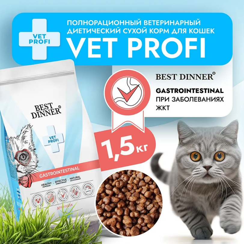 Обеспечьте своему любимцу полноценное и безопасное питание с нашим высокоэффективным лечебным кормом для кошек для лечения жкт. Этот уникальный корм создан специально для кошек, страдающих от заболеваний желудочно-кишечного тракта, таких как воспалительные заболевания кишечника, острая и хроническая энтеропатия, гастрит, колит, а также при нарушениях пищеварения, реабилитационный период и истощении. Благодаря тщательно подобранному составу, он помогает не только облегчить симптомы, но и предотвратить развитие серьезных заболеваний.