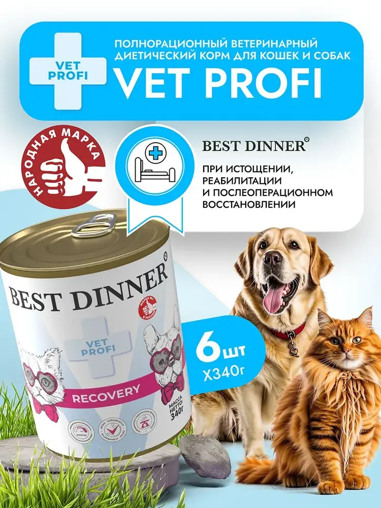 Закажите прямо сейчас корм Best Dinner Vet Profi Recovery и обеспечьте своему любимцу качественное восстановление! Не откладывайте заботу о здоровье — выберите лучший влажный корм для кошек и собак после операции и подарите вашему питомцу комфорт, заботу и быстрое выздоровление. Ваша забота — их здоровье!