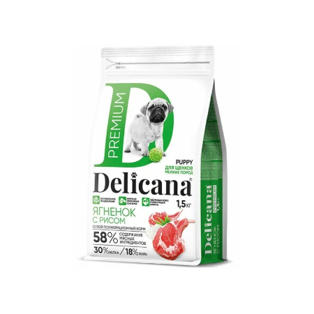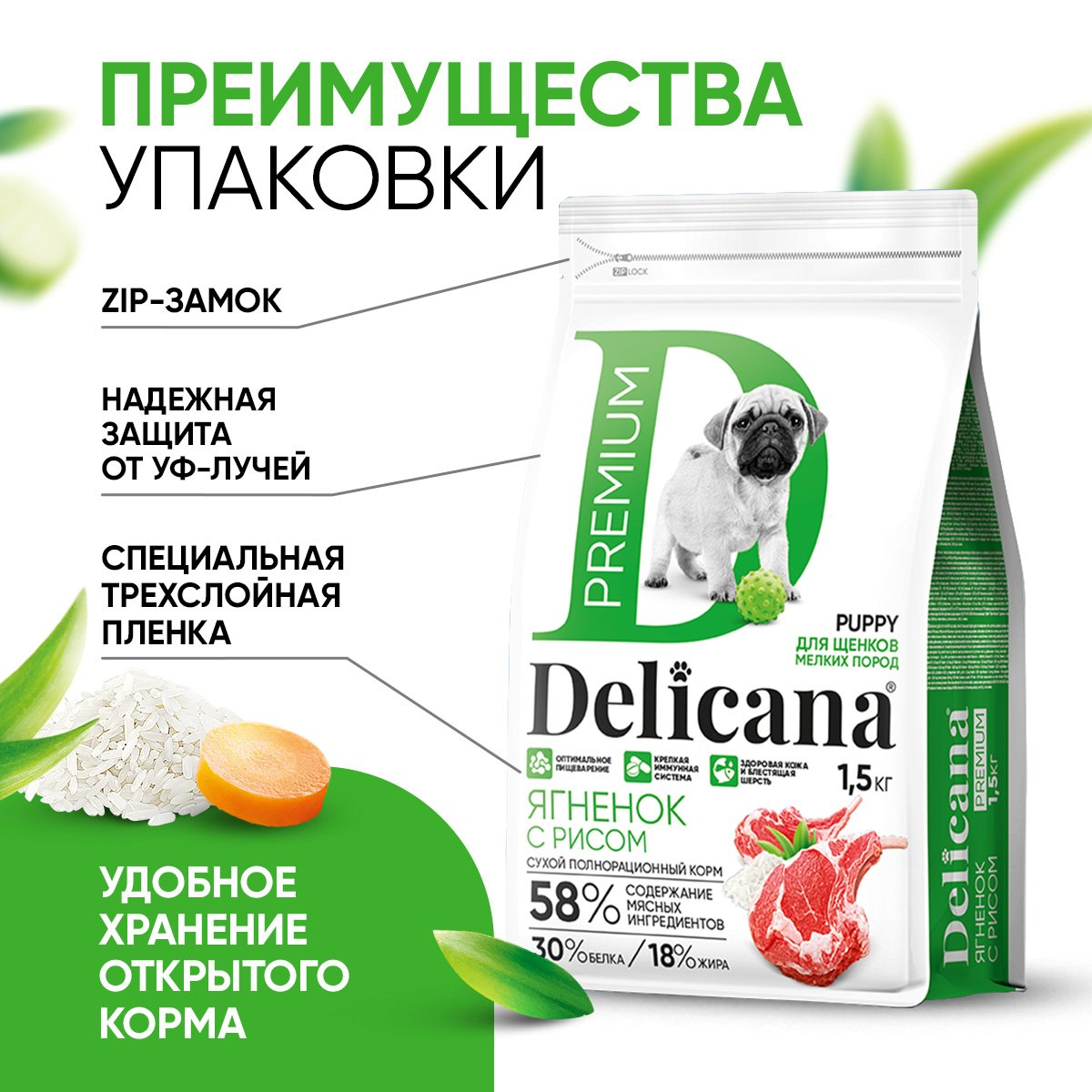 Delicana cухой полнорационный корм для щенков мелких пород с ягненком и рисом (гипоаллергенный).