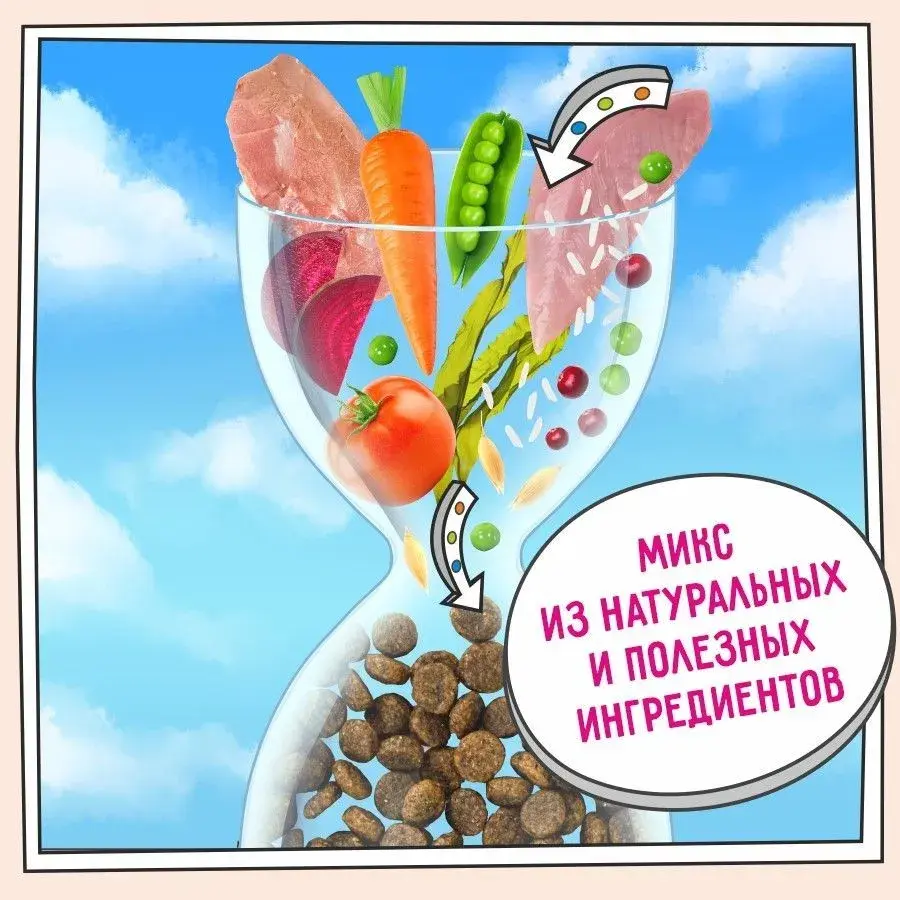 Состав: дегидрированное мясо индейки, рис, овес, куриный жир, мясо ягненка, горох, витамины и минералы — всё для здоровья вашей кошки!