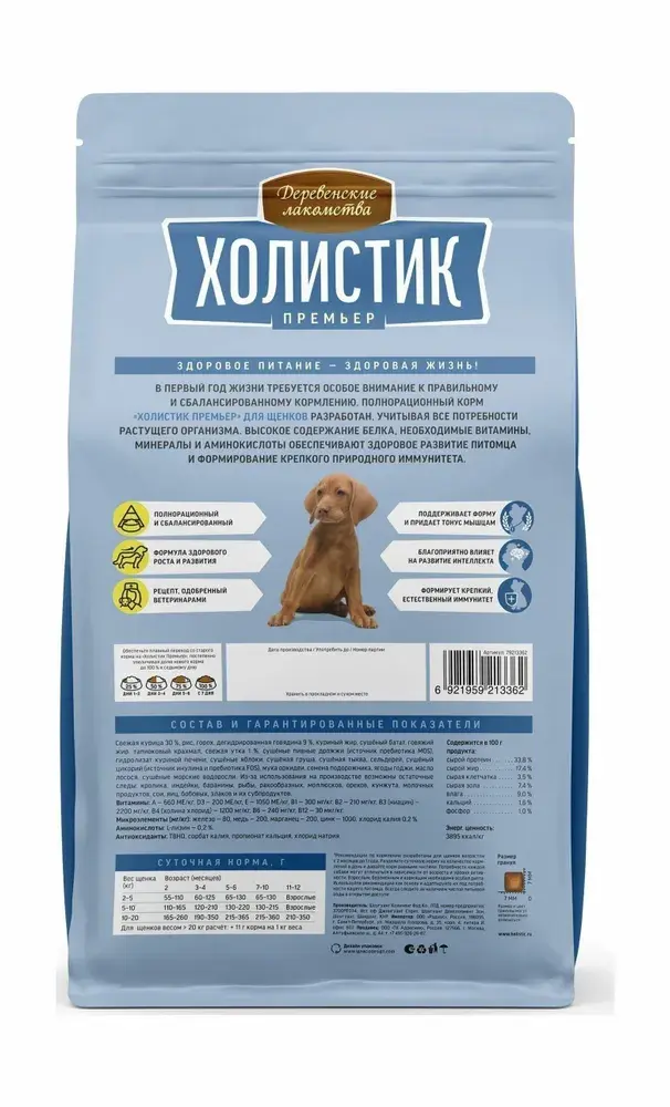 В первый год жизни требуется особое внимание к правильному и сбалансированному кормлению. Полнорационный корм «Холистик Премьер» Для щенков разработан, учитывая все потребности растущего организма. Высокое содержание белка, необходимые витамины, минералы и аминокислоты обеспечивают здоровое развитие питомца и формирование крепкого природного иммунитета.