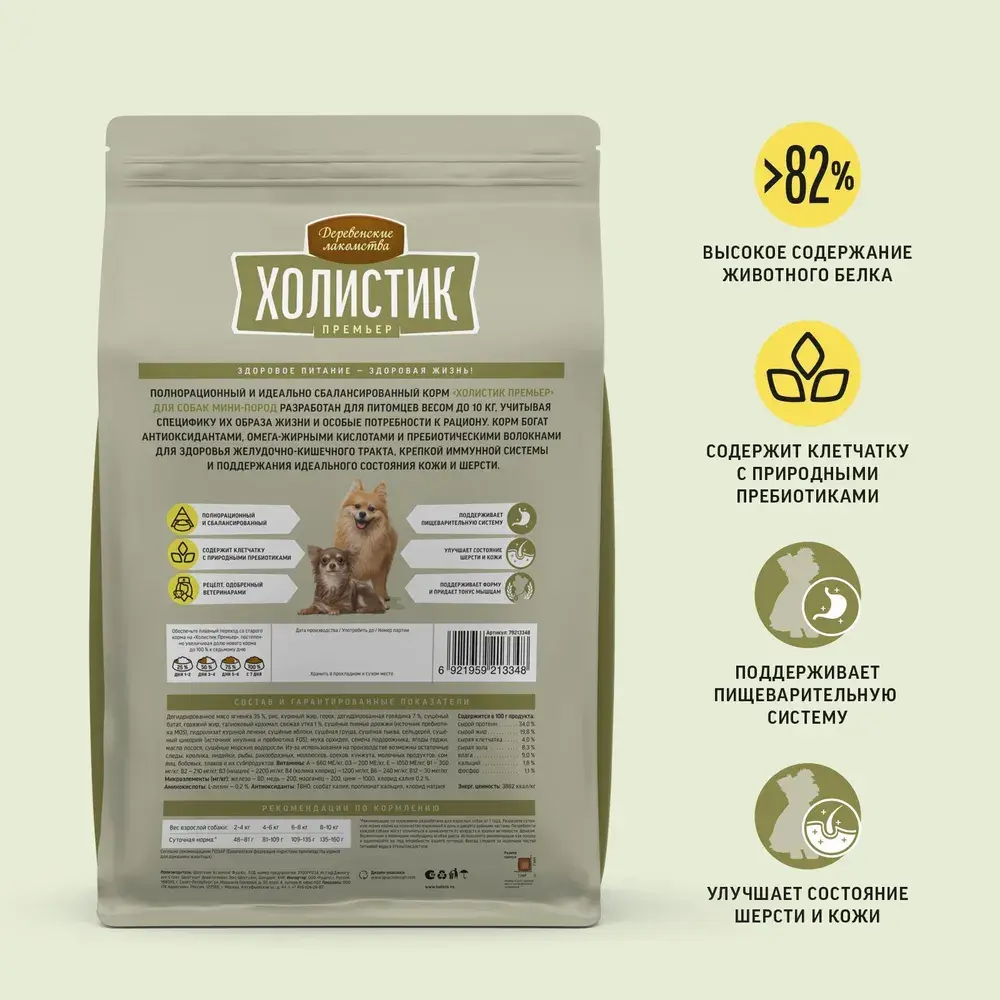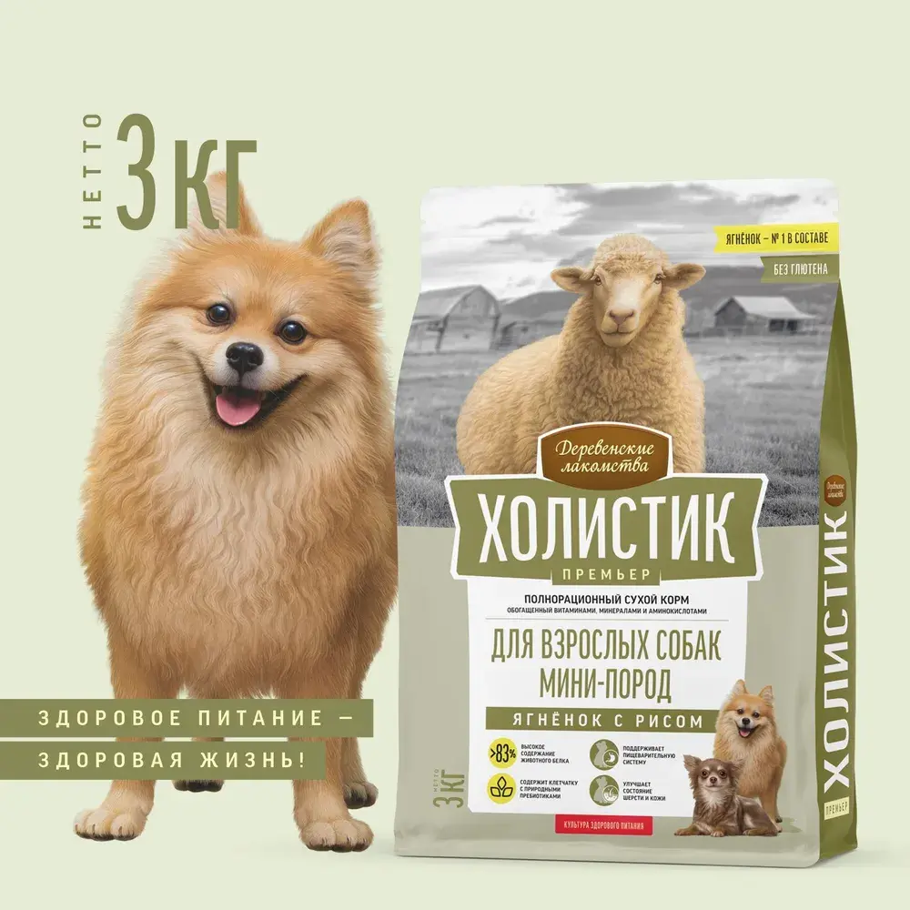 Сухой корм Деревенские лакомства - Холистик премьер для взрослых собак мини-пород «Ягнёнок с рисом» - рецепт здоровья и долголетия питомца!
