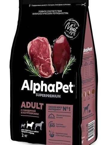 AlphaPet Superpremium — высококачественный сухой корм для собак средних пород 2 кг