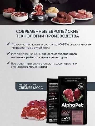 Alphapet корм для собак купить стоит тем, кто ценит натуральность и заботится о здоровье животного. В процессе производства используется бережная технология, которая позволяет сохранить максимум полезных свойств свежего мяса и других ингредиентов. Корм не содержит ГМО, искусственных красителей, ароматизаторов и консервантов, что минимизирует риск аллергий и нежелательных реакций у собак.