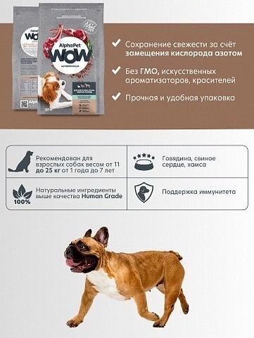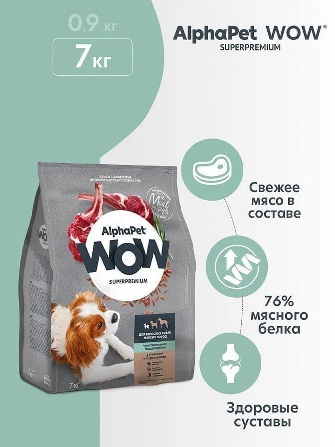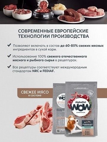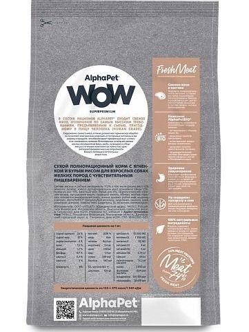 Корм на основе свежего натурального мяса ягнёнка с бурым рисом под брендом AlphaPet WOW Superpremium. Оригинальная швейцарская технология производства премиум корма, позволяющая включать свежее мясо в рацион, гарантирует высокое качество. Корм для собак сухой АльфаПет WOW Суперпремиум содержит 76% высококачественного мясного белка. Сухой корм для собак помогает быстро утолить голод и восстановить силы.Применяется уникальный комплекс трав и экстактов AlphapetBIO, а также витамины, микроэлементы и минеральные вещества для полноценной жизни питомца. Собачий корм помогает повысить эффективность работы иммунной системы и укрепление здоровья. Сухой корм для собак мелких пород уменьшает вероятность расстройства работы пищеварительной системы.Корм для собак мелких пород АльфаПет WOW Суперпремиум создан с использованием свежего мяса ягнёнка, курицы, индейки и свежей рыбы хамсы. Корма для собак премиум класса обеспечивают контроль за весом домашнего питомца. Корм для собак мелких пород премиум помогает поддерживать высокий уровень физической активности взрослых собак мелких пород.