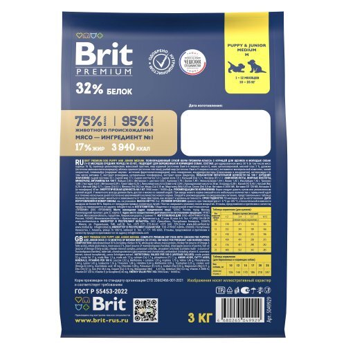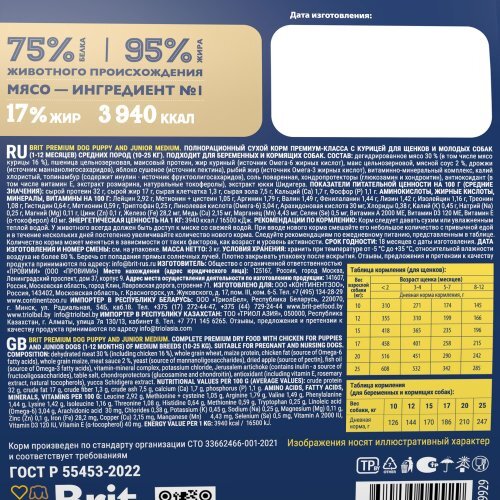 Brit Premium — корм премиум класса с высоким содержанием мяса 30%, в том числе мясо курицы 16%. Состав идеально сбалансирован и отвечает всем потребностям в зависимости от возраста и породы. Содержание незаменимых аминокислот способствуют здоровому гармоничному развитию.
