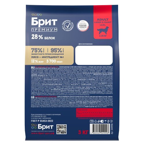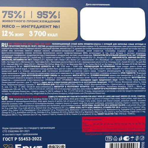 Brit Premium — корм премиум класса с высоким содержанием мяса 30%, в том числе мясо курицы 14%. Состав идеально сбалансирован и отвечает всем потребностям в зависимости от возраста и породы. Содержание незаменимых аминокислот способствуют здоровому гармоничному развитию.