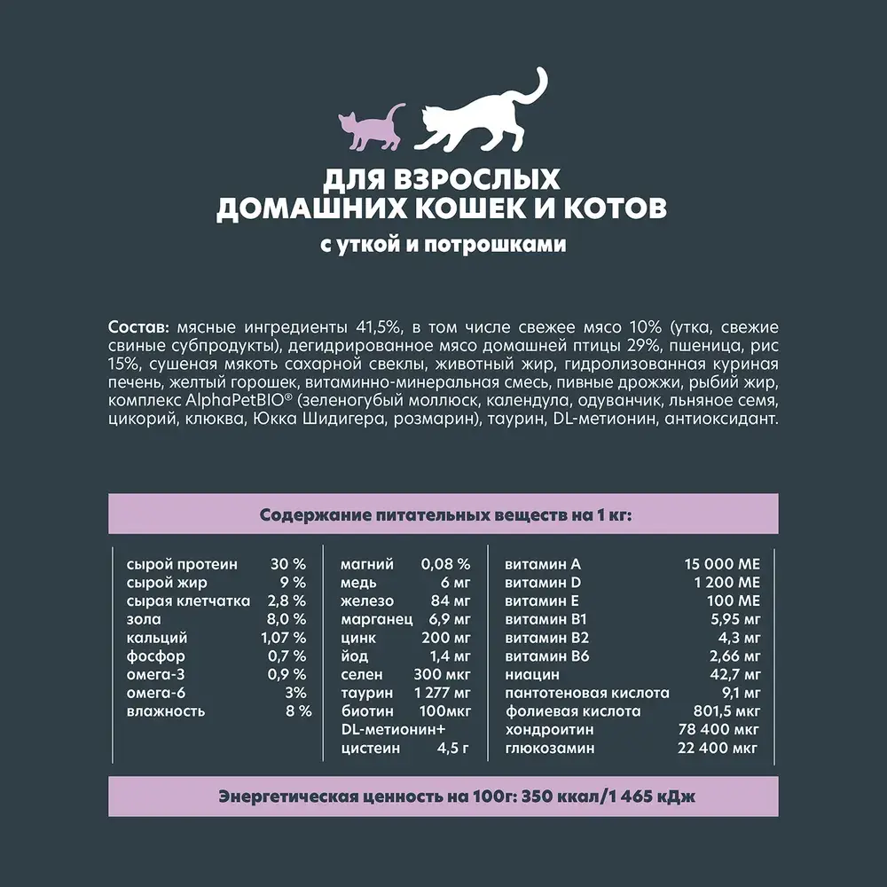 Кроме того, wow корм для кошек включает в себя уникальный комплекс натуральных добавок AlphaPetBIO®, который содержит полезные травы, семена и ягоды. Эти компоненты способствуют укреплению иммунной системы, улучшению пищеварения и поддержанию общего здоровья животного. В составе отсутствуют искусственные красители, ароматизаторы и ГМО, что делает корм максимально безопасным для питомцев с чувствительным пищеварением.