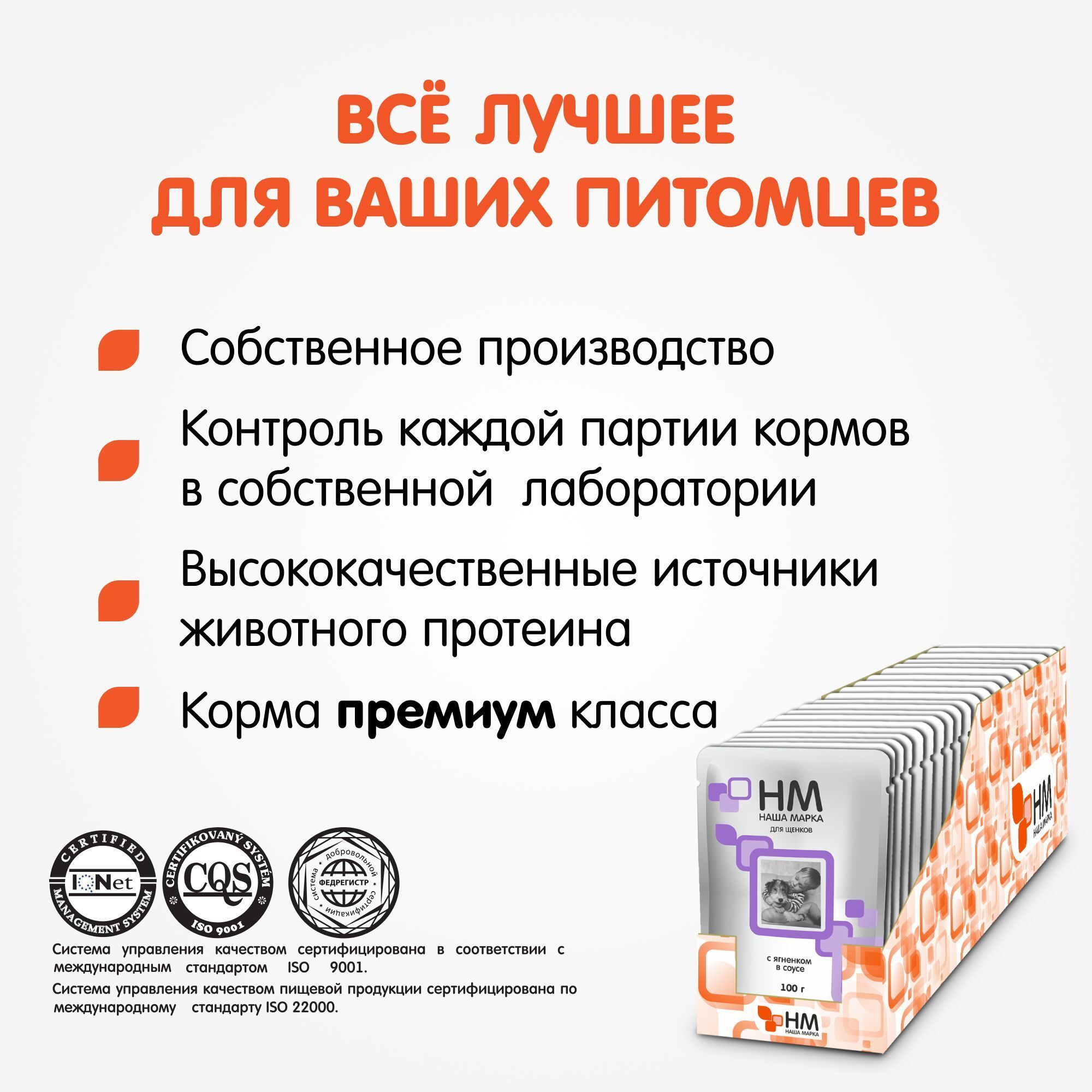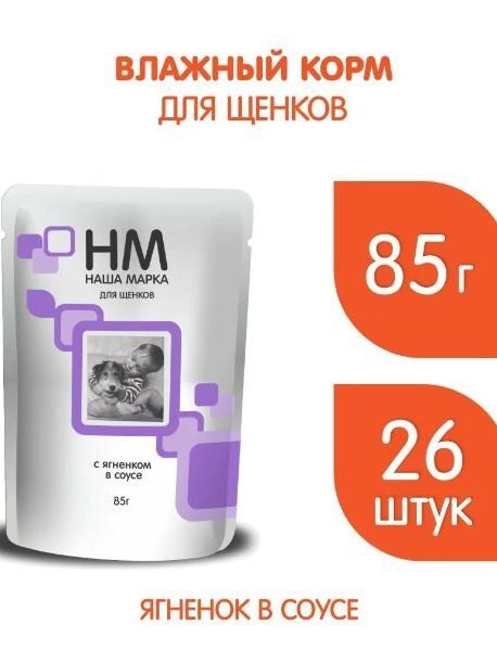 Влажный корм Наша марка для щенков - консервы Наша Марка с ягненком в соусе. Этот влажный корм наша марка специально разработан для удовлетворения потребностей растущего организма щенков. Интересно? Влажный корм Наша марка содержат натуральные ингредиенты, включая ягненка, что делает его вкусным и питательным и полезным.