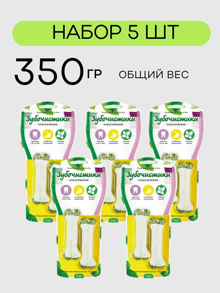 Набор из 5 упаковок каждая по 2 жевательных косточек для чистки зубов собак "Зубочистики" Косточки изготовлены из натуральной говяжьей кожи, специально обернутой для долгого жевания, содержат хлорофилл, который помогает улучшить усвояемость сухих кормов, поддерживает здоровую кишечную флору, активизирует выведение токсинов и усиливает иммунную систему организма.