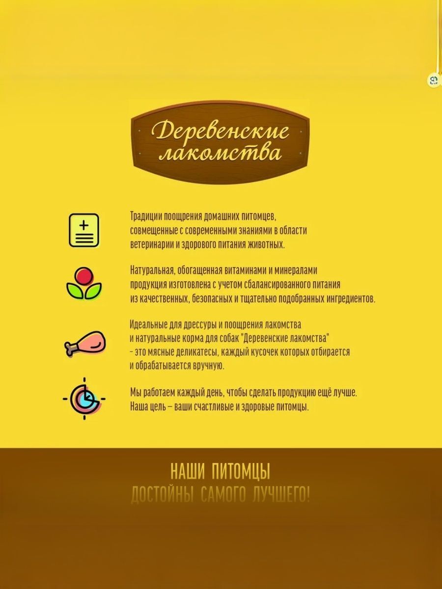 Не откладывайте, купите легкое и сушеное лакомство для собак прямо сейчас и порадуйте своего питомца вкусным угощением. Деревенские лакомства для собак - это лучший выбор для вашего четвероногого друга.