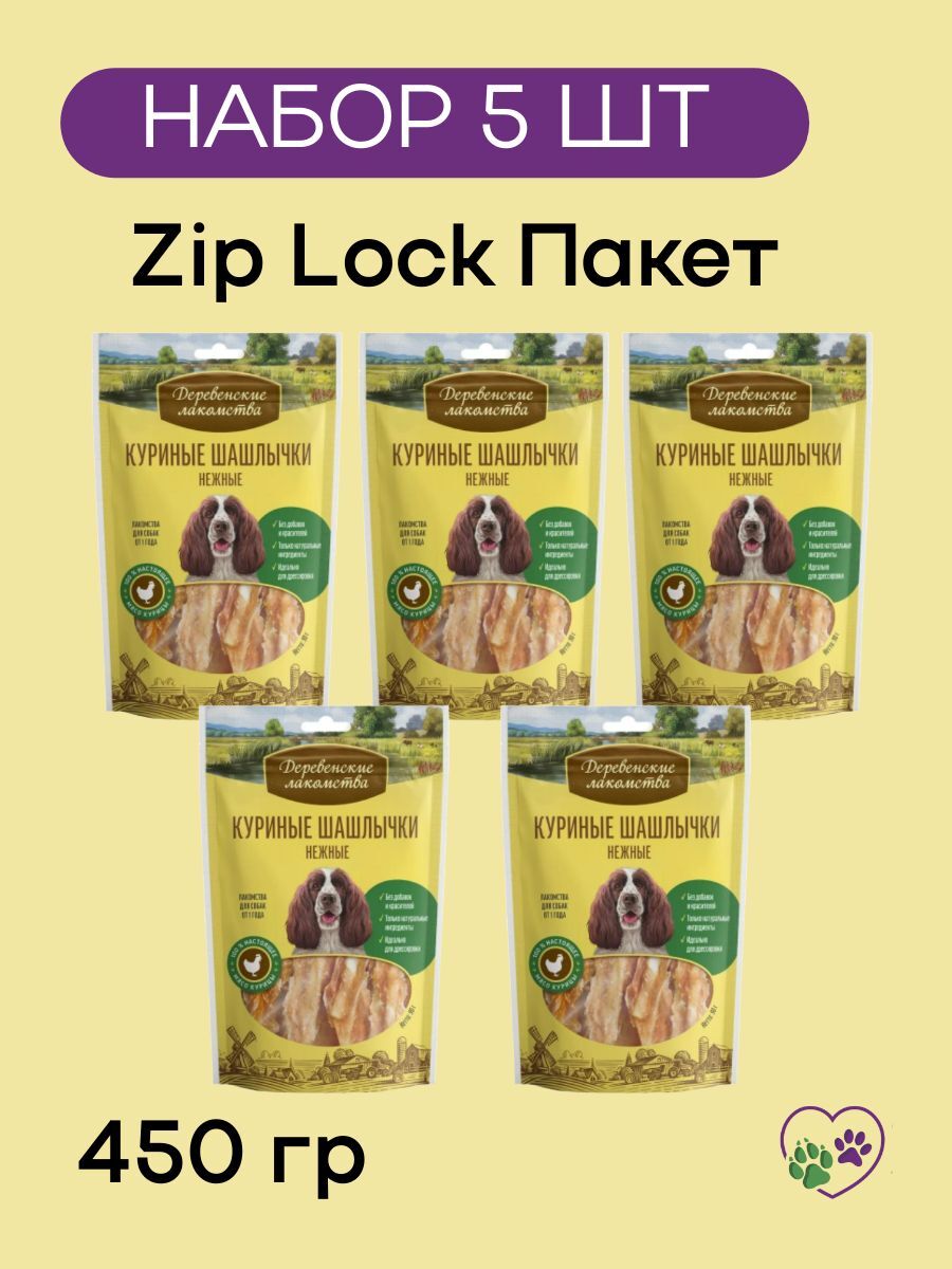 Лакомства для собак: Куриные шашлычки нежные Деревенские лакомства (0,09 кг, набор из 5 упаковок)