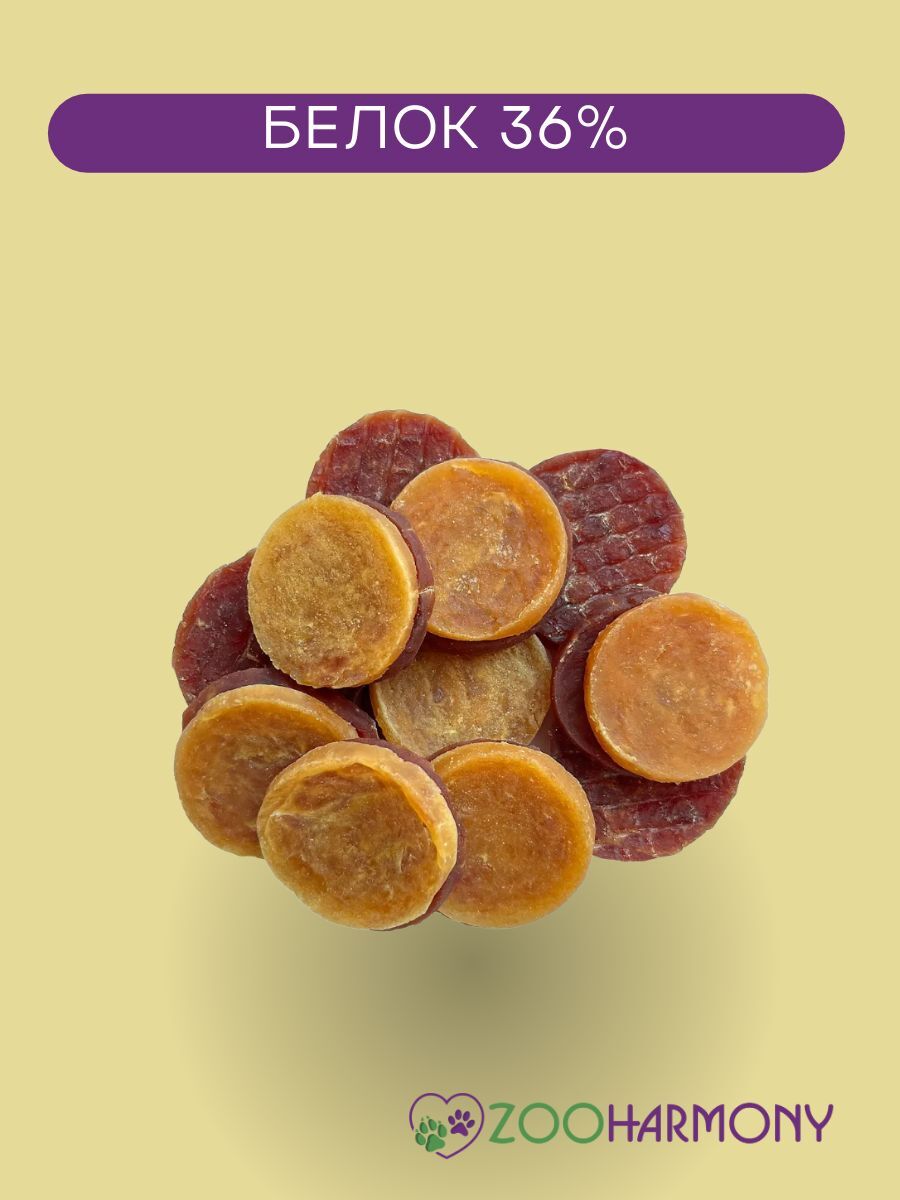 Медальоны из отборного мяса курицы и утки — полезное диетическое угощение для собак. Мягкая текстура и удобная форма лакомства — залог успеха тренировок или просто способ выразить свою любовь к питомцу.