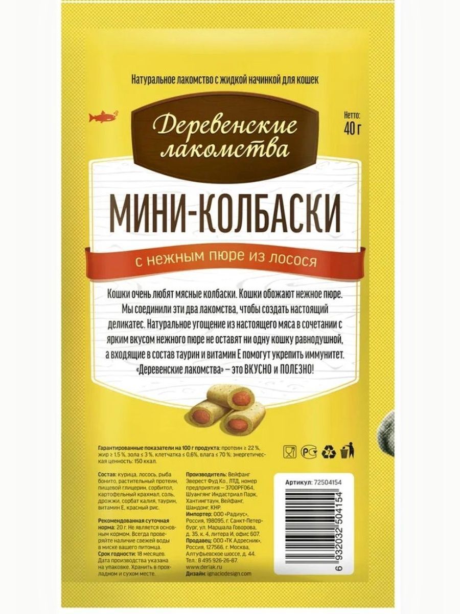 Подарите вашему питомцу настоящий праздник с мини-колбасками с пюре из лосося от "Деревенские лакомства"!