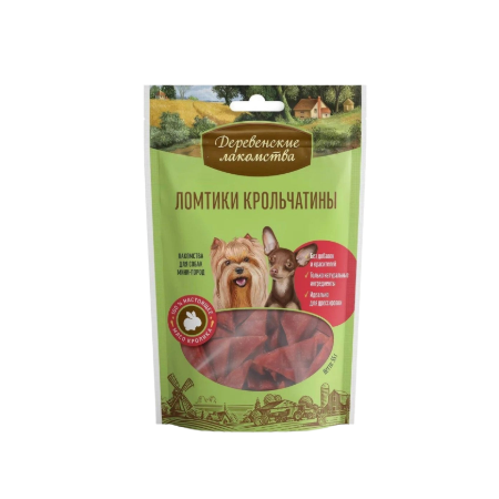 Порадуйте своего четвероногого друга изысканными лакомствами для собак! Наши деревенские лакомства для собак мелких пород в виде диетических ломтиков из нежнейшей крольчатины идеально подойдут для собак мини-пород. Эти лакомства не только легко усваиваются, но и абсолютно гипоаллергенны, что делает их безопасными даже для чувствительных питомцев.