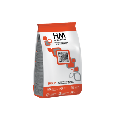 Наша Марка 0,5кг с цыпленком и овощами сухой корм для взрослых собак средних пород.