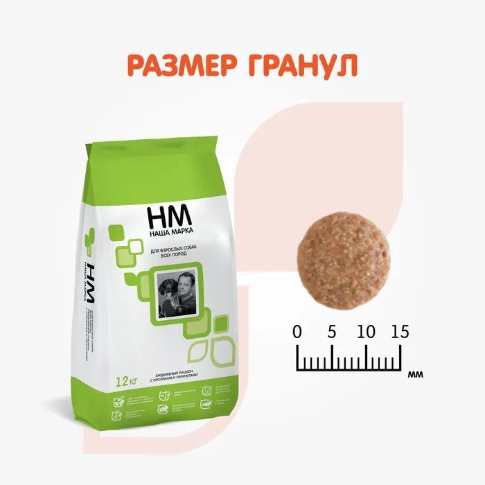 Корм "Наша Марка" для собак 12 кг содержит тщательно подобранные компоненты, включая кролика и перепелок, что делает его не только вкусным, но и максимально полезным. Такой состав обеспечивает высокое качество белков и жиров — белки 18%, жиры 10%, что способствует укреплению мышечной массы и поддержанию оптимальной массы тела. Мы заботимся о здоровье вашей собаки, поэтому в наш корм входит уникальный комплекс витаминов А, D3 и Е, а также минералы кальций и фосфор, обеспечивающие крепкие кости и здоровую зубную эмаль.