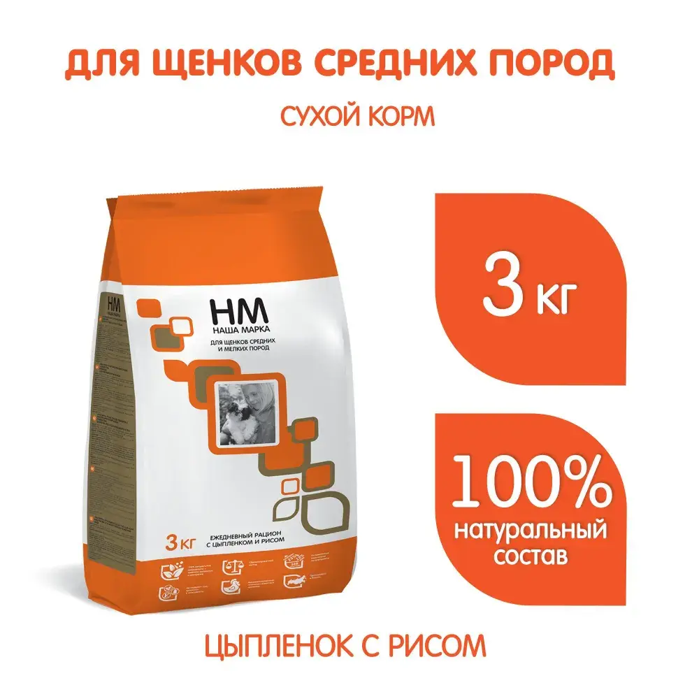 СУХОЙ КОРМ 'НАША МАРКА' ДЛЯ ЩЕНКОВ СРЕДНИХ И МЕЛКИХ ПОРОД С МЯСОМ ЦЫПЛЕНКА И РИСОМ.