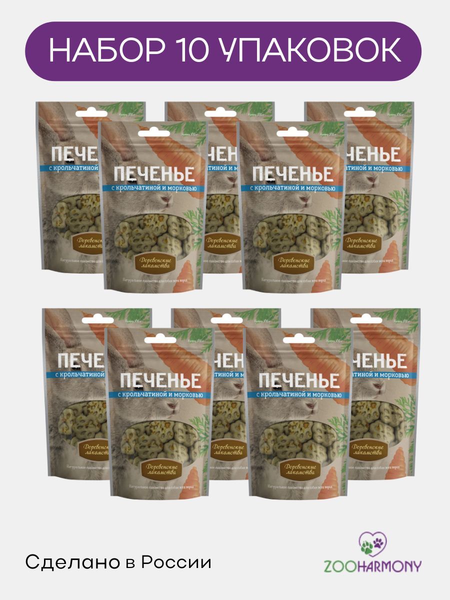Представляем вашему вниманию набор печенья для собак "Деревенские лакомства" в упаковках по 0,1 кг! Этот продукт создан с любовью и заботой о здоровье вашего четвероногого друга. Печенье для собак с крольчатиной и морковью - это идеальный выбор для всех, кто хочет побаловать своего питомца вкусным и полезным лакомством.