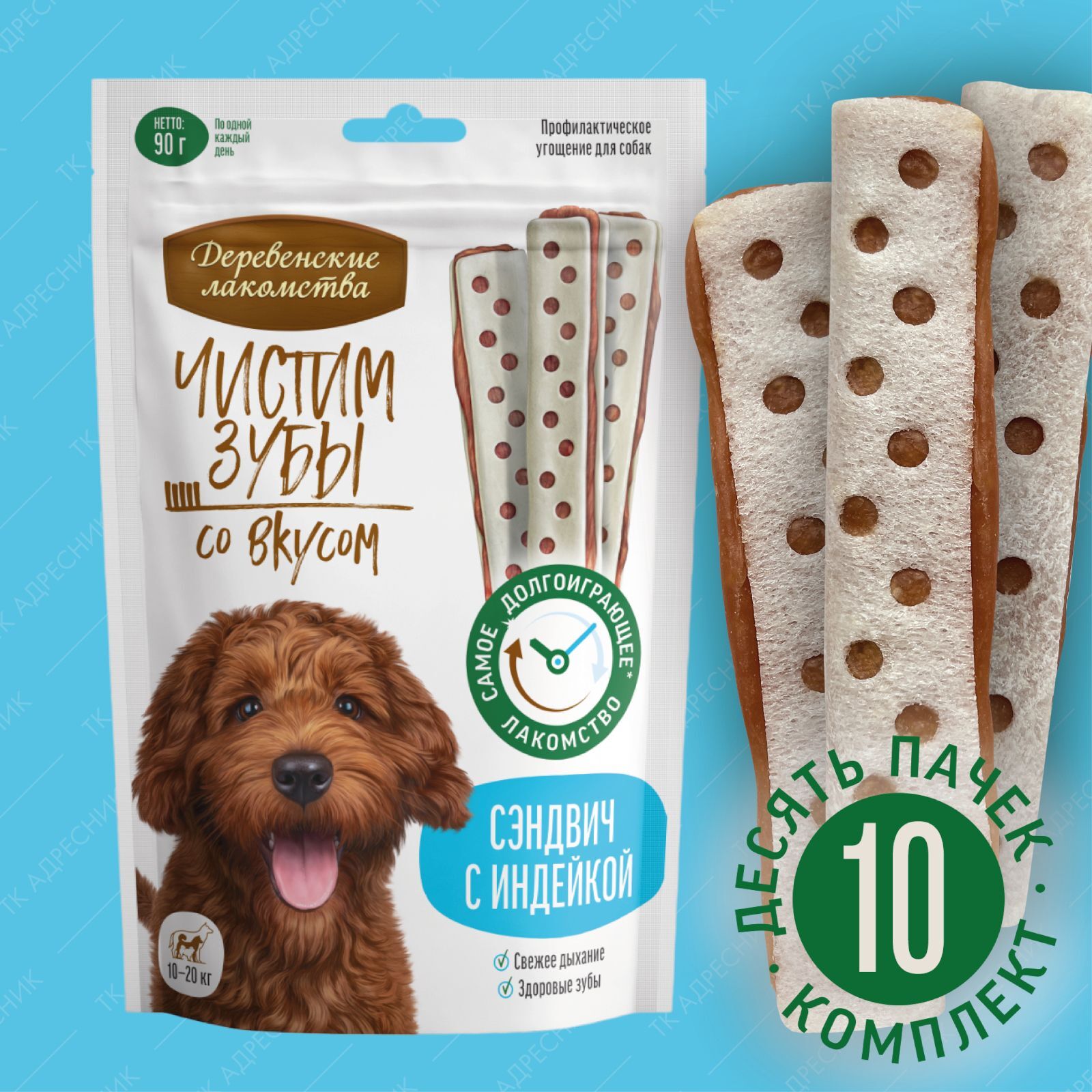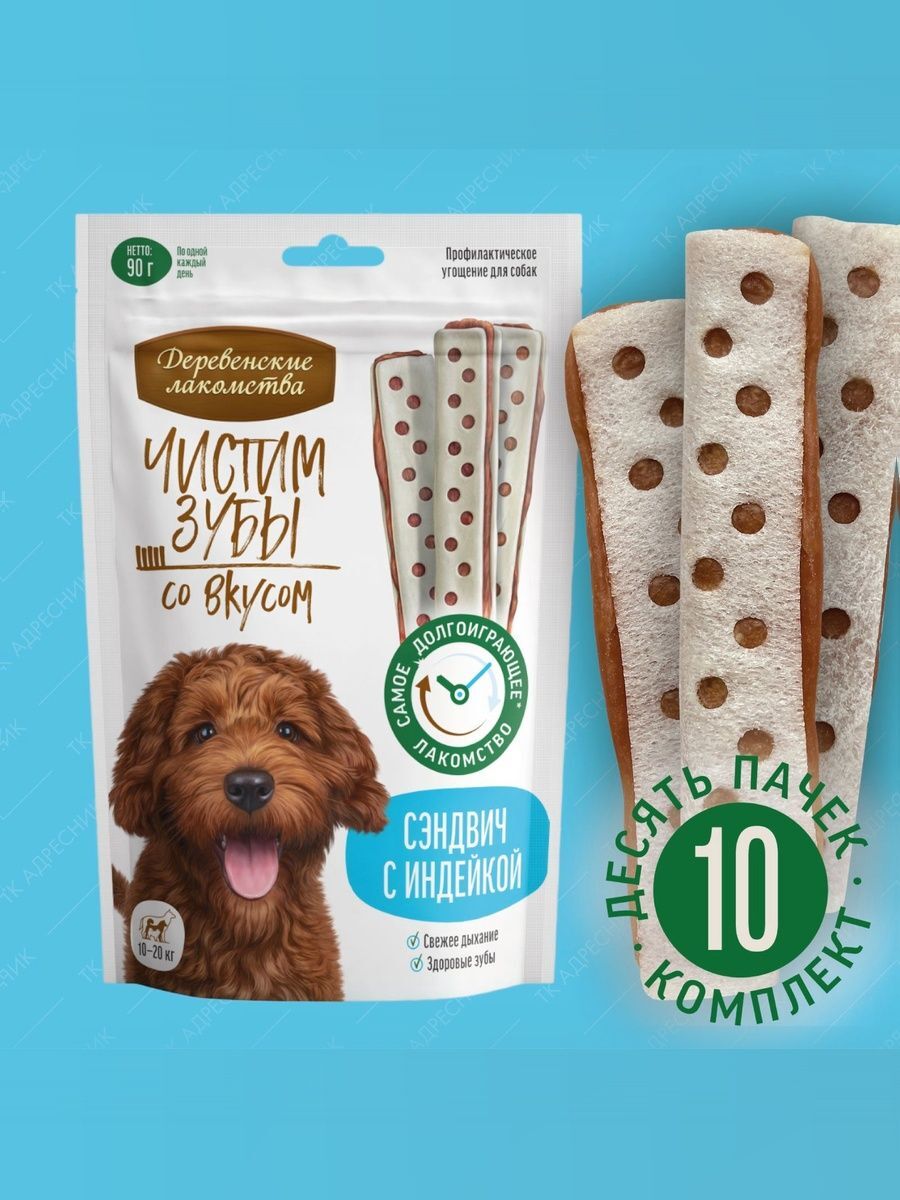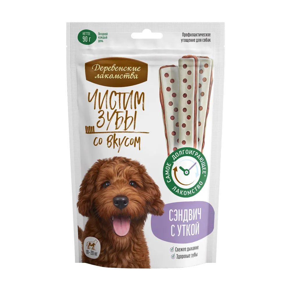 Супер-жевательное лакомство Сэндвич с уткой эффективно удаляет зубной налёт, предотвращая образование зубного камня. Мясная начинка приготовлена из отборного филе утки и не содержит искусственных консервантов и красителей. Теперь чистить зубы не только просто, но и вкусно!