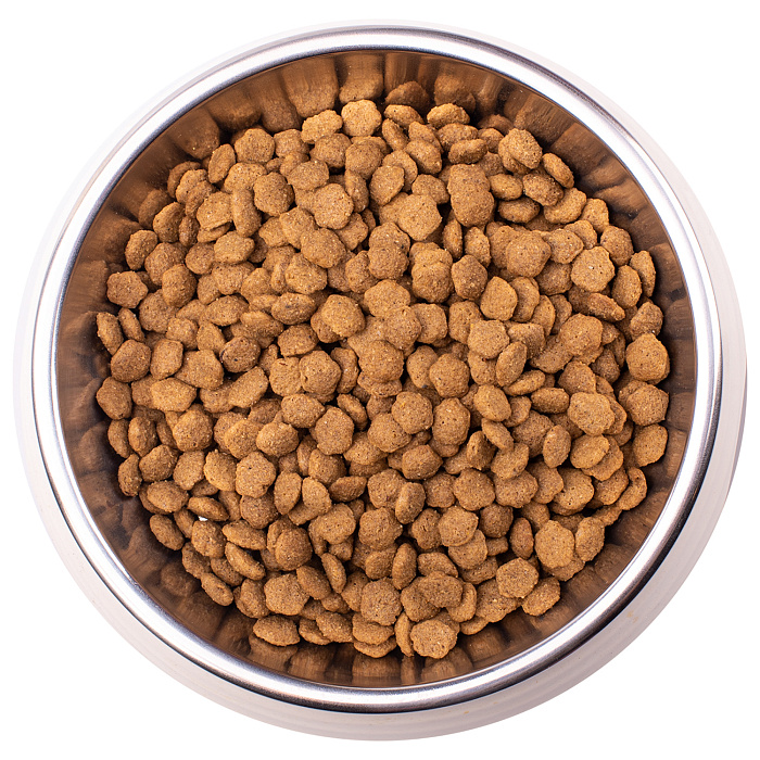 Дегидрированное мясо курицы, тапиока (20%)**, гидролизованный белок лосося, сушеный горох**, клетчатка гороха, дегидрированное мясо утки, пивные дрожжи, животный жир (куриный жир)*, рыбий жир (лососевый жир)*, картофельный белок, ксилоолигосахариды (XOS 0,4%), минеральные вещества, семена подорожника (0,5%), юкка шидигера, продукты и субпродукты обработки свежих фруктов и овощей (концентрат сока дыни (Cucumis melo cantalupensis) источник супероксиддисмутазы 0,005%), сухой молочный белок. *Очищенный на 99,6%, консервированный с помощью натуральных антиоксидантов. **Источник углеводов.