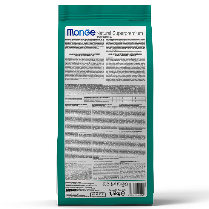 Monge (Монж) Cat Daily Line Hairball сухой корм из мяса курицы для выведения комочков шерсти у кошек и котов с курицей 1,5 кг.