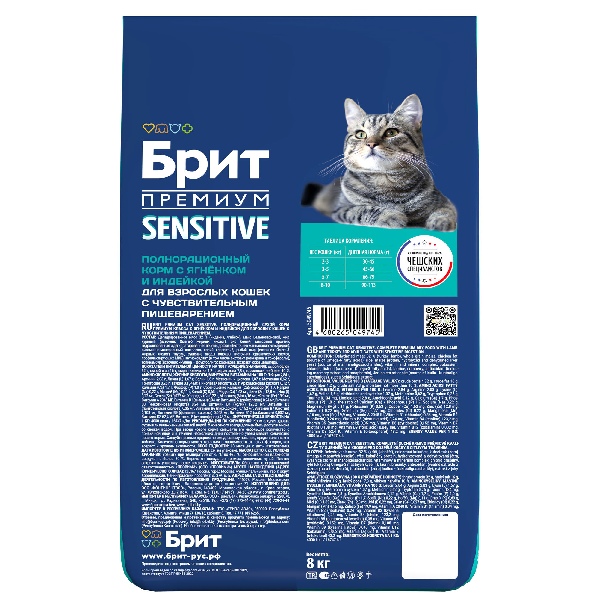 Состав: Дегидрированное мясо 32 % (индейка, ягнёнок), маис цельнозерновой, жир куриный (источник Омега-6 жирных кислот), рис белый, маисовый протеин, гидролизованная и дегидратированная печень, дрожжи (источник маннанолигосахаридов), витаминно-минеральный комплекс, калий хлористый, рыбий жир (источник Омега-3 жирных кислот), таурин, сушеные ягоды клюквы (источник органических кислот, профилактирующих МКБ), антиоксидант (в том числе экстракт розмарина и токоферолы), топинамбур (источник инулина - фруктоолигосахаридов), экстракт юкки Шидигера. Показатели питательной ценности на 100 г (средние значения): сырой белок 32 г, сырой жир 16 г, сырая клетчатка 1,2 г, сырая зола 7,8 г, влажность не более 10 %. Аминокислоты, жирные кислоты, минералы, витамины на 100 г: Лейцин 2,84 г, Аргинин 2,03 г, Лизин (L) 1,67 г, Валин 1,6 г, Метионин и цистеин 1,07 г, Метионин 0,62 г, Триптофан 0,26 г, Таурин 0,134 мг, Линолевая кислота 2,8 г, Арахидоновая кислота 0,12 г, Кальций (Ca) 1,7 г, Фосфор (P) 1,0 г, Соотношение кальций (Ca) / фосфор (P) 1,7, Натрий (Na) 0,22 г, Mагний (Mg) 0,11 г, Kалий (K) 0,63 г, Медь (Cu) 1,63 мг, Цинк (Zn) 12,8 мг, Йод (I) 0,22 мг, Селен (Se) 0,027 мг, Хлориды (Cl) 0,22 г, Марганец (Mn) 4,16 мг, Железо (Fe) 19,9 мг, Витамин А 2048 МЕ, Витамин В1 (тиамин) 0,34 мг, Витамин В2 (рибофлавин) 0,24 мг, Витамин В3 (никотиновая кислота) 0,24 мг, Витамин В4 (холин) 123,2 мг, Витамин В5 (пантотеновая кислота) 0,35 мг, Витамин В6 (пиридоксин) 0,152 мг, Витамин В7 (биотин) 0,108 мг, Витамин В9 (фолиевая кислота) 0,048 мг, Витамин В12 (кобаламин) 0,002 мг, Витамин D3 62,4 МЕ, Витамин Е (α–токоферол) 43,2 мг. Энергетическая ценность на 1 кг: 4000 ккал / 16747 кДж.
