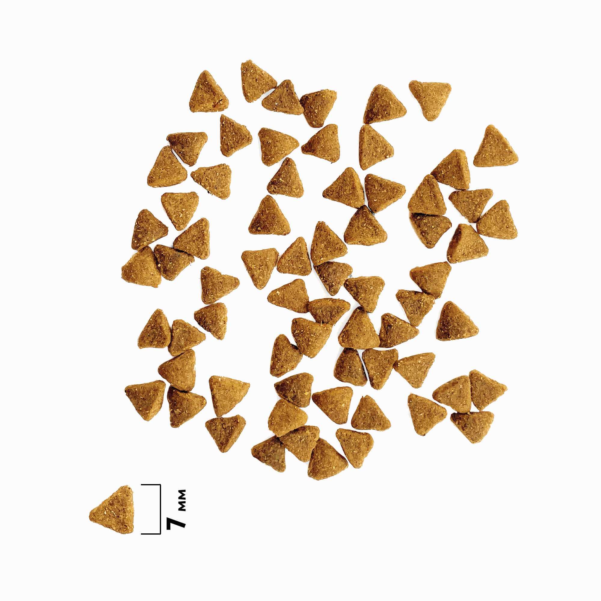 Состав: Дегидрированное мясо курицы 37 %, маис цельнозерновой, маисовый протеин, рис, свекольная пульпа, жир куриный (источник Омега-6 жирных кислот), гидролизованная и дегидратированная печень 3 %, яблоки, дрожжи (источник маннанолигосахаридов), витаминно-минеральный комплекс, рыбий жир (источник Омега-3 жирных кислот), таурин, топинамбур (источник инулина – фруктоолигосахаридов), клюква, антиокислитель, L-карнитин, экстракт юкки Шидигера, экстракт розмарина. Пищевая ценность на 100 г (средние значения): белок 37 г, жир 11 г, клетчатка 2,3 г, зола 6,8 г. Витамины, минералы, аминокислоты на 1 кг: Кальций (Ca) 17 г, Фосфор (P) 9 г, Селен (Se) 5 г, Лизин (L) 17 г, Натрий (Na) 1 г, Хлориды (Cl) 1,2 г, Метионин и Цистин 12,1 г, Триптофан 2,7 г, Магний (Mg) 1,1 г, Калий (K) 2,8 г, Железо (Fe) 270 мг, Цинк (Zn) 141 мг, Марганец (Mn) 32 мг, Йод (I) 2,2 мг, Витамин А 20480 МЕ, Витамин D3 624 МЕ, Витамин Е (α–токоферол) 432 мг, Витамин В1 (тиамин) 3,4 мг, Витамин В2 (рибофлавин) 2 мг, Витамин В3 24 мг, Витамин В5 4 мг, Витамин В6 1,52 мг, Витамин В12 0,02 мг, Биотин 1,08 мг, Фолиевая к-та 0,48 мг, Таурин 1 мг, Медь (Cu) 18 мг. Энергетическая ценность на 1 кг: 3680 ккал / 15407 кдж.