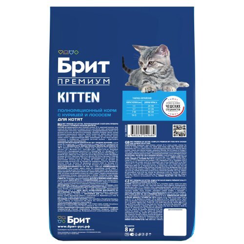 Полнорационный сухой корм премиум-класса с курицей и лососем для котят, 8 кг