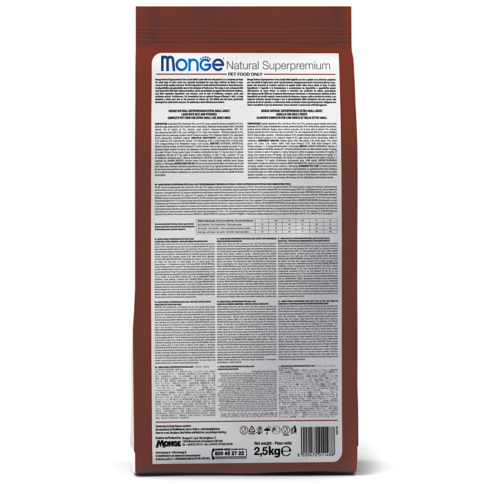 onge (Монж) Dog Speciality Line Monoprotein Puppy & Junior Mini сухой корм из мяса ягнёнка с рисом для щенков мелких пород 2,5 кг.