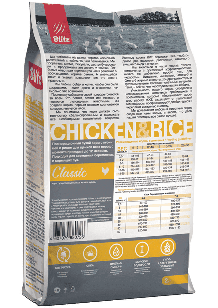 Blitz Classic Chicken & Rice Puppy All Breeds — идеальный выбор для щенков всех пород