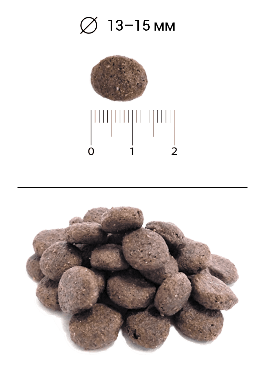 Состав: Свежее мясо ягненка (25%), дегидрированное мясо утки (20%), жир животный, в том числе, говяжий, свиной (12%), гидролизованная печень (3%), яичный порошок, картофель, картофельный протеин, горох, льняное семя (1%), пивные дрожжи (источник MOS), сушеная мякоть свеклы, высушенные плоды рожкового дерева и сушеное яблок (источники пектина – натуральный адсорбент), морские водоросли (0,3%), мохаве юкка (0,03%), корень одуванчика (Taraxacum officinale) (0,02%), обезвоженный гранат (Punica granatum) (0,02%), обезвоженный ананас (Ananas sativus L.) (0,02%), L-карнитин, розмарин (0,02%).