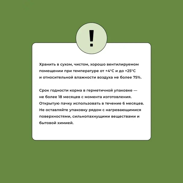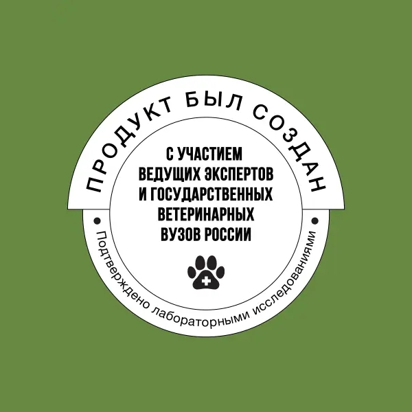 • Соответствует нормам по кормам FEDIAF, NRC и российскому ГОСТу Р 55453-2022.