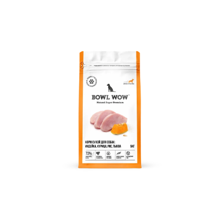 Сухой корм для собак крупных пород с индейкой, курицей, тыквой BOWL WOW 5кг