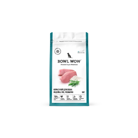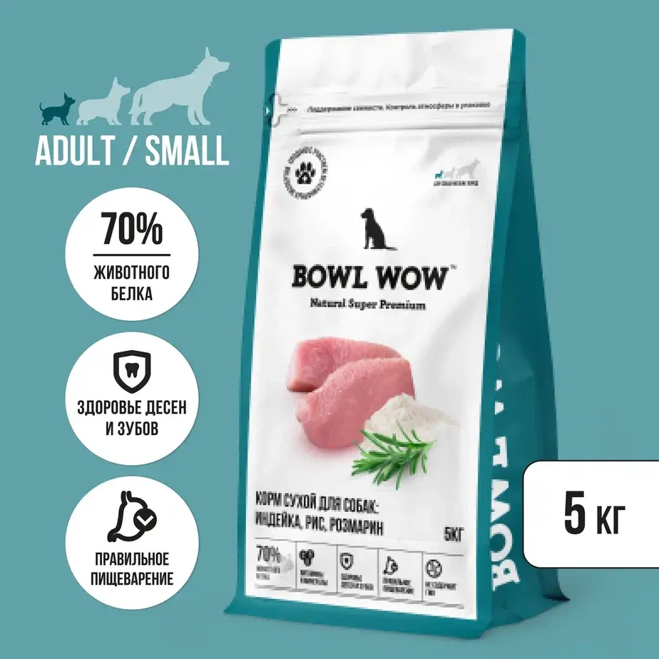 Сухой корм для собак мелких пород с индейкой, рисом, розмарином BOWL WOW 5кг