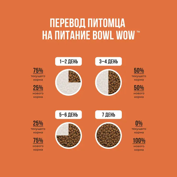 Полнорационный корм BOWL WOW с ягненком, индейкой, рисом и морковью — это формула со свежим бескостным мясом и полезными субпродуктами. Она разработана специально для собак средних пород (от 10 до 25 кг) и содержит полноценный аминокислотный профиль, необходимый вашему питомцу. Помимо сбалансированных белков, жиров, углеводов, витаминов и микроэлементов, в состав входят комплексы поддержки чувствительного пищеварения и иммунной системы. Размер гранул 12–14 мм идеально подходит для взрослых собак средних пород.