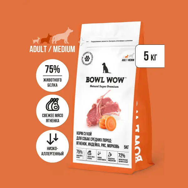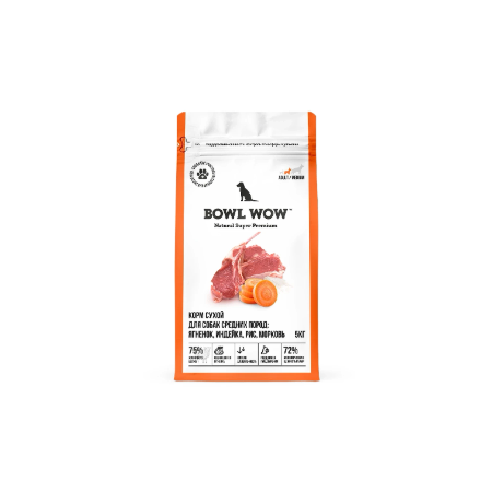 Полнорационный корм BOWL WOW с ягненком, индейкой, рисом и морковью — это формула со свежим бескостным мясом и полезными субпродуктами. Она разработана специально для собак средних пород (от 10 до 25 кг) и содержит полноценный аминокислотный профиль, необходимый вашему питомцу. Помимо сбалансированных белков, жиров, углеводов, витаминов и микроэлементов, в состав входят комплексы поддержки чувствительного пищеварения и иммунной системы. Размер гранул 12–14 мм идеально подходит для взрослых собак средних пород.